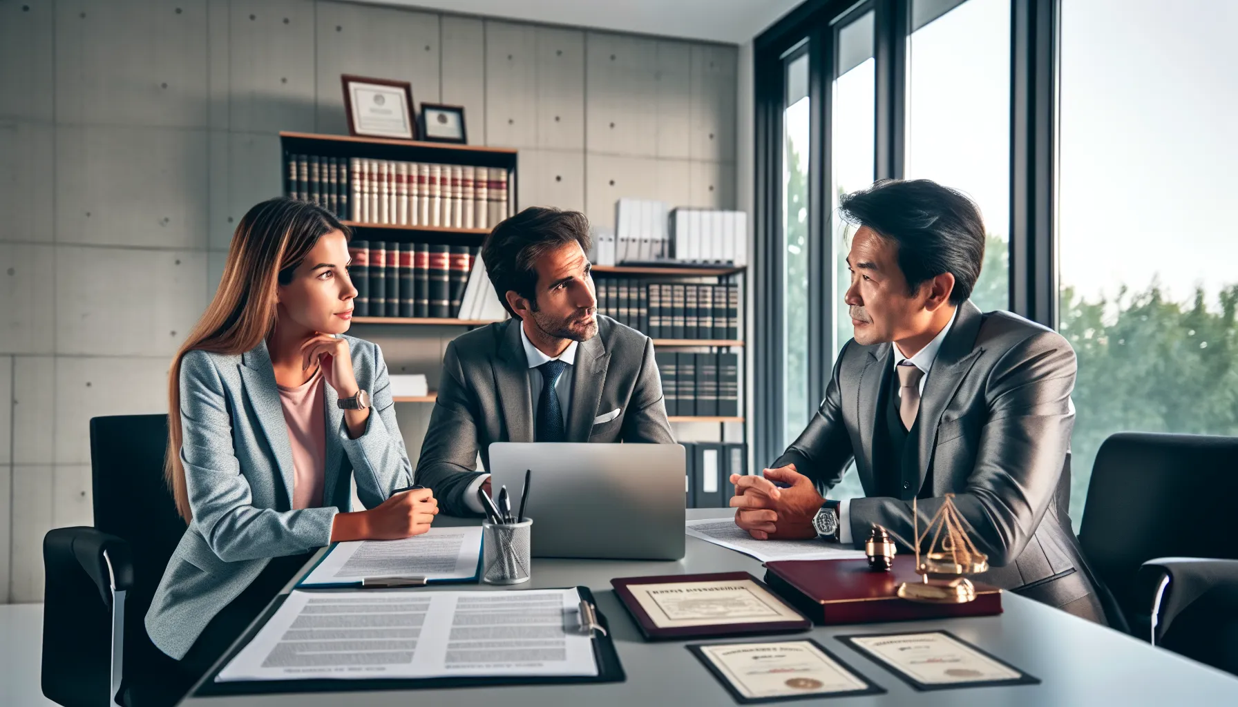 Croatian brother and sister reviewing legal documents in modern office